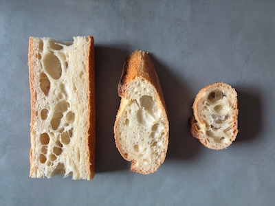 私は、クラスト(外側)はカリッと、クラム(内側)はソフトな食感も楽しめるのが好きで、端っこより少し内側から食べることが多いのですが、これはあくまで私の好みです。ほかの人はどうなのだろう。その違いを知ることができたら、いままで以上にバゲットを堪能できるのではないかと思ったのです。