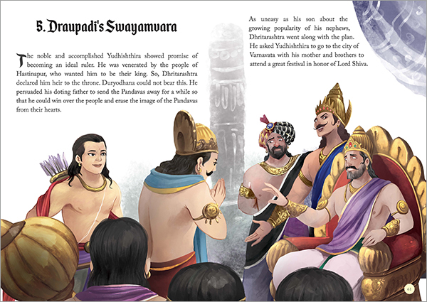 膨大なマハーバーラタのお話を一冊にまとめるには沢山のエピソードが削られてしまいますが、ページ数が多ければ多いほど採用される話も多く、初めてマハーバーラタに触れる人はもちろん、すでにお話を知っている方にも「このエピソードがイラストで見られる!」のを楽しんでいただけるかと思います。